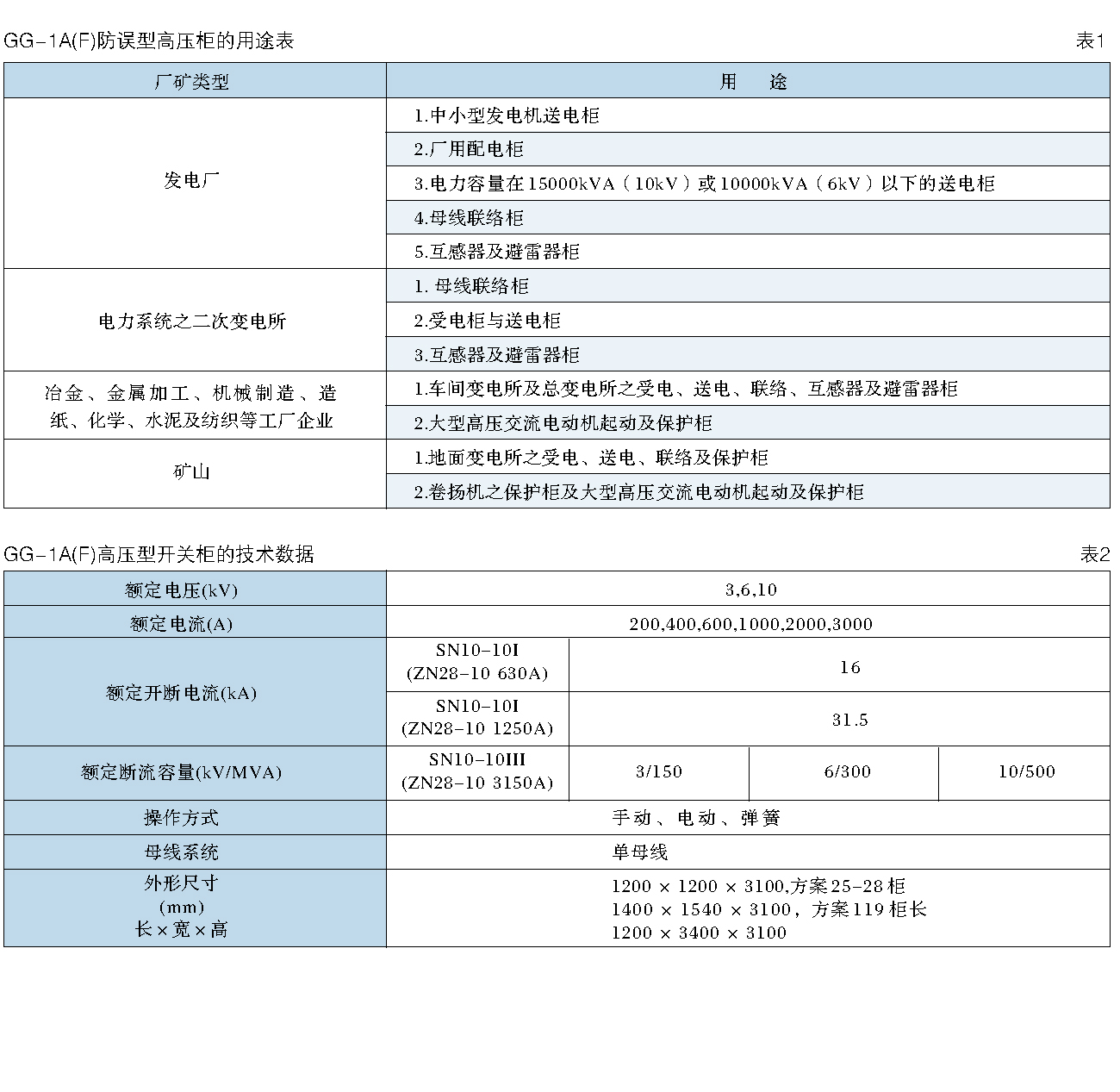 GG-1A (F) (Z) type high voltage switch cabinet technical parameters see table 2;