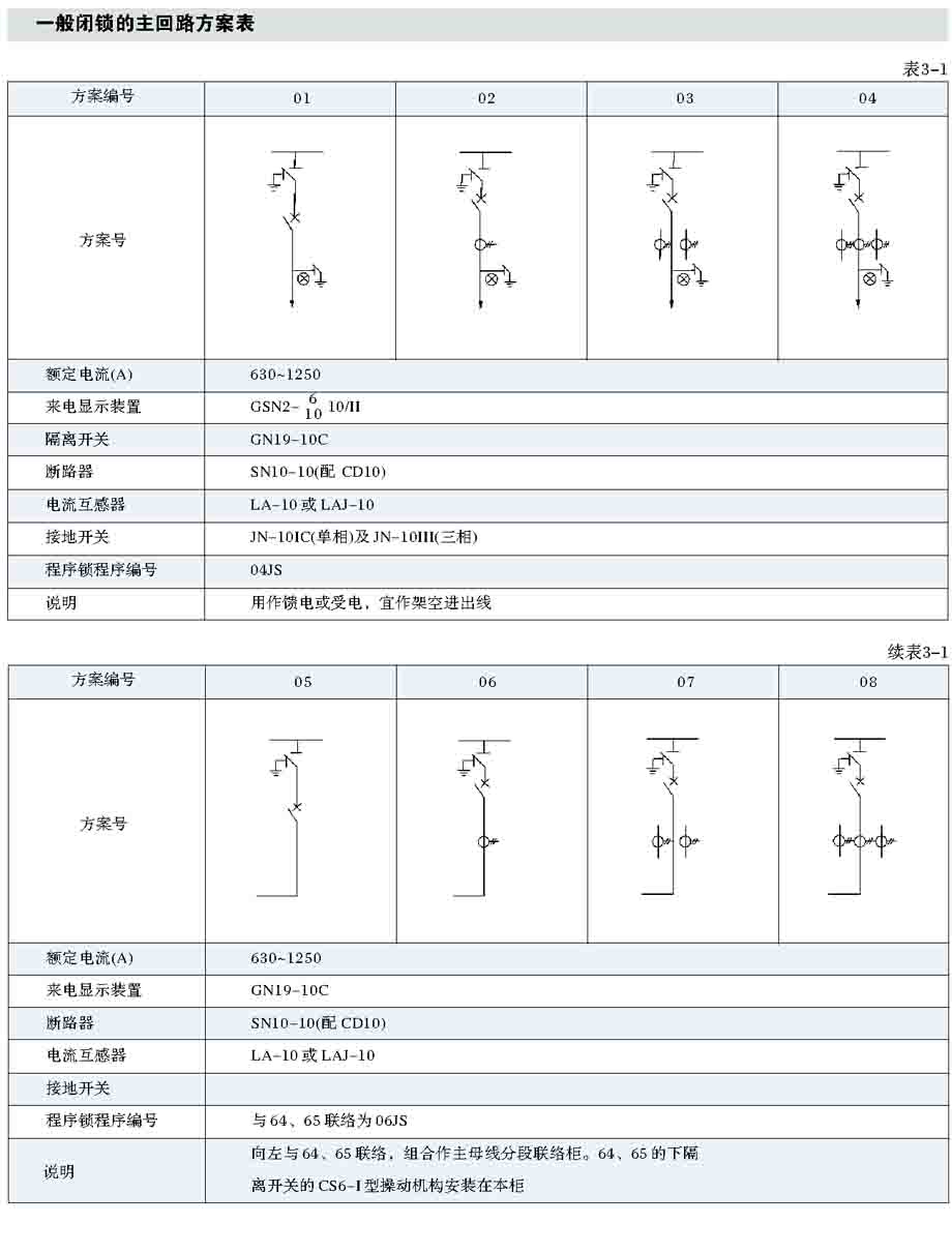 General locking the main loop scheme are shown in table 3-1. General atresia without considering 21-22,25-28,31-33 and the 37-39 main loop scheme, while not considering the circuit breaker equipped with CS2 type actuator scheme;
