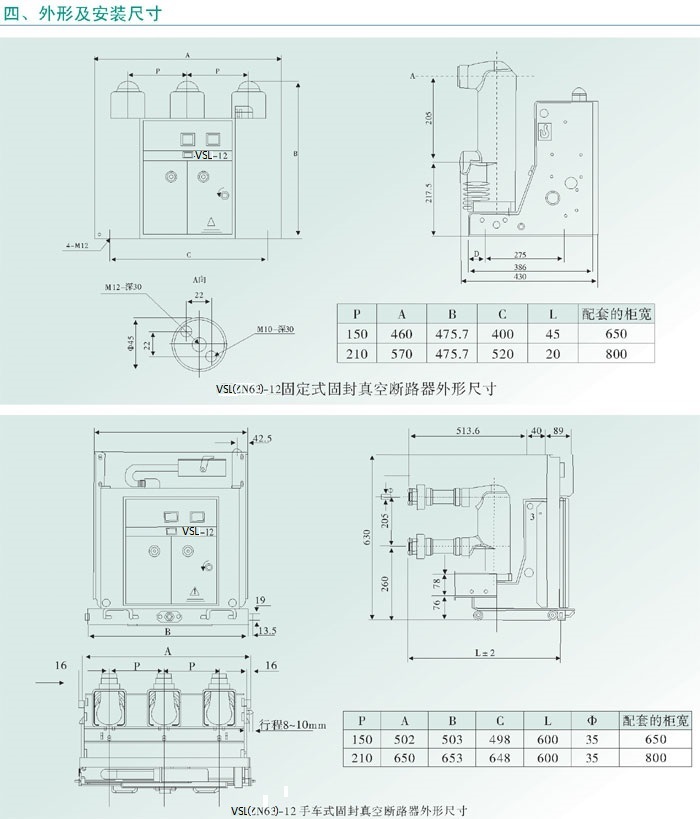 The product can be installed in kyn28, KYN96 type switch cabinet or supporting other armoured metalclad withdraw switchgear: provide the rated current for 630A1600A, fixed sealed pole of vacuum circuit breaker can be installed on the 650mm, 800mm, width of the cabinet of the switch cabinet;