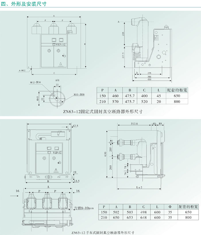 The product can be installed in kyn28, KYN96 type switch cabinet or supporting other armoured metalclad withdraw switchgear: provide the rated current for 630A1600A, fixed sealed pole of vacuum circuit breaker can be installed on the 650mm, 800mm, width of the cabinet of the switch cabinet;