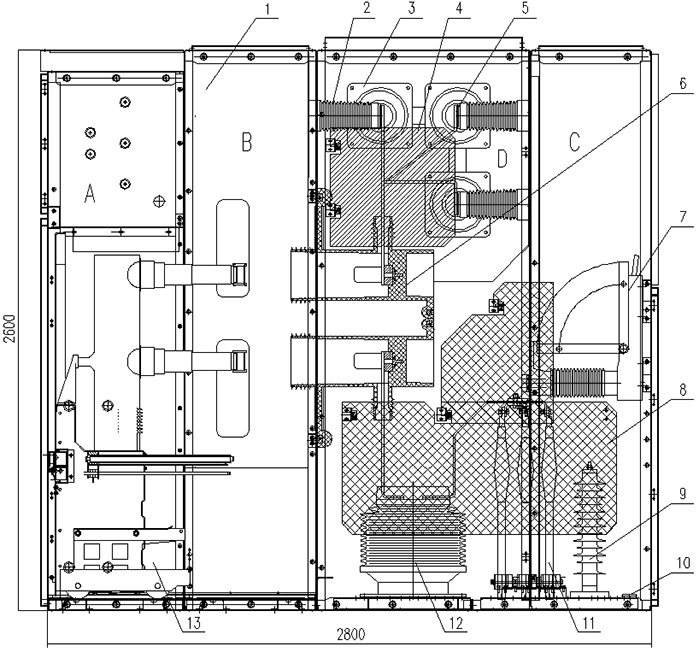 3.2 adjacent cabinets is separated by a wall bushing, limiting the fault arc spreading, to avoid the accident;