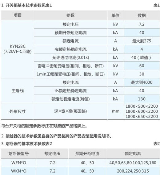 Three, the basic technical parameters of the switch cabinet: