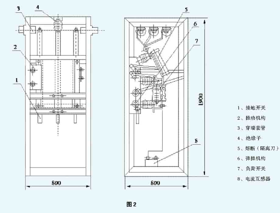 2 ring network cabinet main with FZN21-12D type load switch or FZRN21-12D type fuse combination, the type of electrical appliances with isolation switch, vacuum load switch, grounding switch, and the isolation switch and grounding switch has obvious fracture.