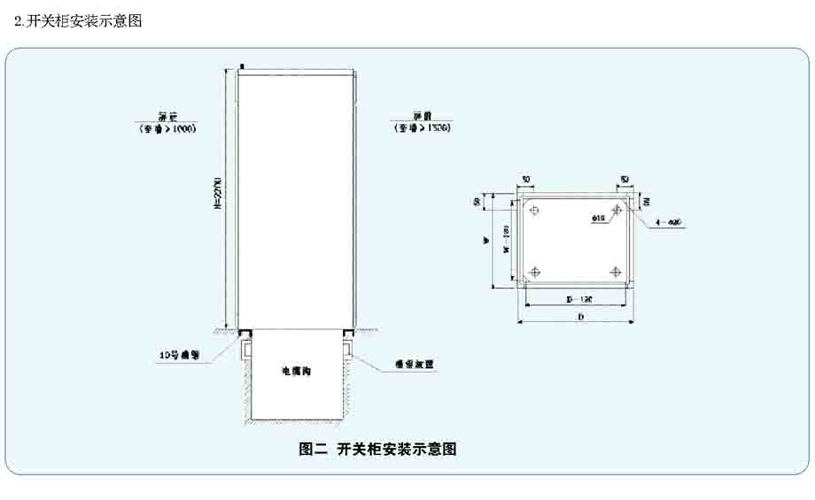 9.1 产品的安装应按配电设备的一般安装方法进行,基础槽钢和采用螺栓固定方式时的螺栓由用户自备。主母线连接时,必需使搭接面贴合、平整,否则松开拼柜螺栓进行调整。