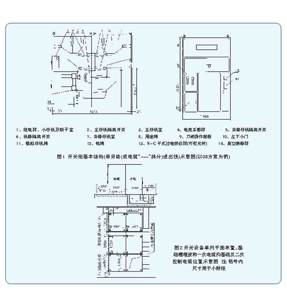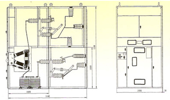 1、前柜 前柜设置了主母线及母线隔离开关室、断路器室、继电器室,主母线及母线隔离开关室在该柜上方,断路器室设置在该柜下方,该室还设置有电流互感器,两室间有绝缘板隔开,通过母线套管相连。 继电器设置在该柜正前面的中部,小母线端子共15节,并设有二线电缆通道,端子室设在左下小门内,可安装JH10型端子80以上,该室下方还设置有M12的接地螺栓供辅助回路接地之用,右小门为维修通道。端子室上方为操作面板,可装设辅助开关。 2、后柜 后柜用螺栓与前柜相连,该柜根据需要可设置旁路母线及隔离开关、架空进出线也由该柜通过,设置旁路母线时,架空进出线未达到安全高度,需增设小附或遮拦网。不设置旁母时,架空时出线可以从后柜顶部通过。该柜还可以安装电压互感器或避雷器,联络母线和电缆出线安装在此柜。后门有螺栓固定,若带电显示器提示没电,可打开后门,主母线室与后柜用隔板隔开。
