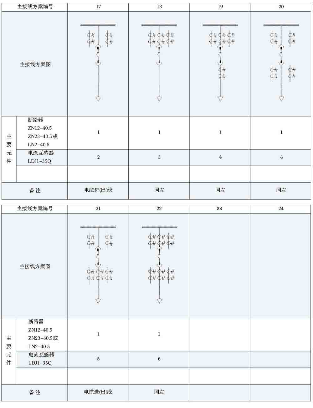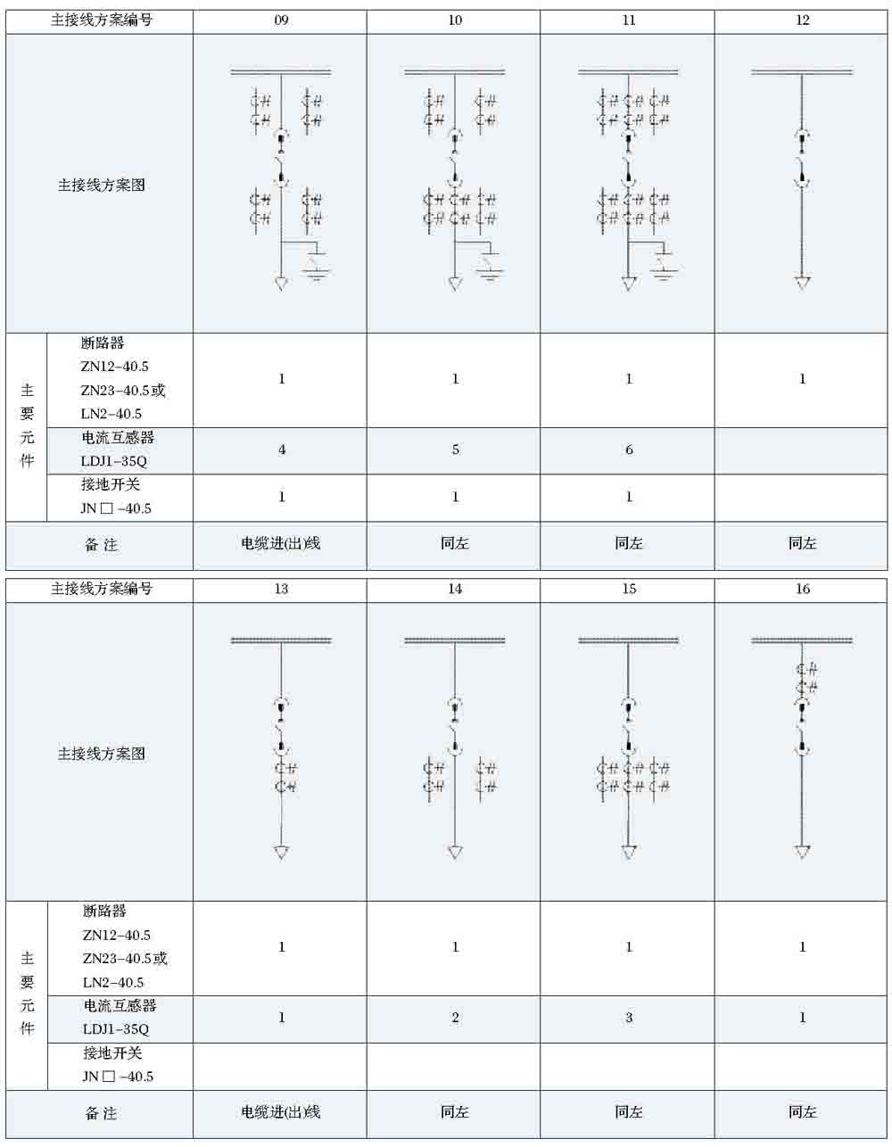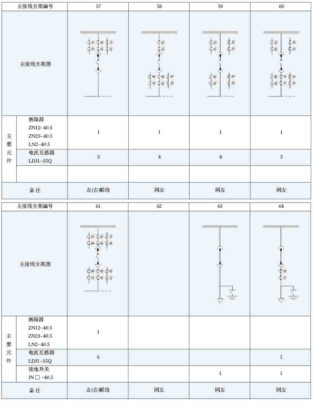 KYN10-40.5KV开关柜为金属铠装式结构,防护等级为IP2X,分柜体和手车两大部分。一次主接线方案见表8,产品外形尺寸和安装尺寸见图1、图2。 注意:当一次方案中架空(或电缆)进出线方案作为进线柜时,必须取消接地开关。