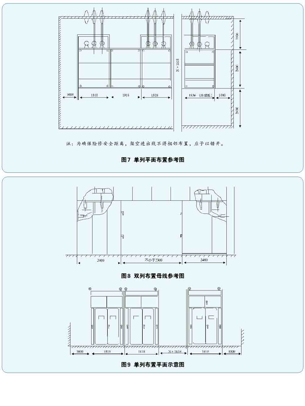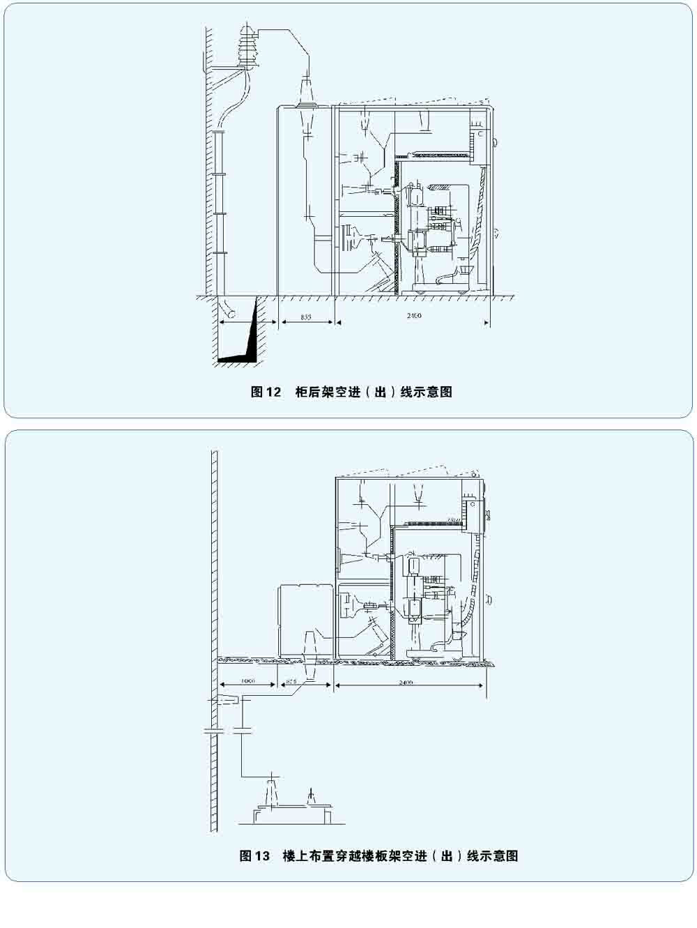 1. 场所 安装开关柜的场所应符合产品样本中规定的使用条件; 2. 安装及并柜 a) 开关柜为不靠墙安装,平面布置分为单列和双列布置两种,并设有母线桥,如图12-图13所示。并柜用紧固件已附在柜内有关安装孔上,并柜安装完毕后应将其紧固。 b) 开关柜安装时,手车之轨道不允许悬空,应紧贴地面。 c) 开关柜安装后,其前、膈、左、右不垂直偏差不得超过1.5/1000mm。 3. 主回路的引入及引出 开关柜主回路的引入采用架空和电缆两种形式,参见图7-图14所示,这两种形式的进(出)线均在开关柜后面加设的装配式小室敷设,该小室与开关柜后壁用螺栓连接,安装时参照图示进行。进出线之穿墙套管及电缆终端盒,由用户自备自装。 4. 基础形式 a) 安装开关柜的地面基础施工应符合“电力建设施工及验收技术规范”中的有关条款规定。为使手车推动轻便和减少尘埃,操作走廊以水磨石地面为佳。 b) 地面埋设槽钢及一、二次回路电缆沟的施工按图15。
