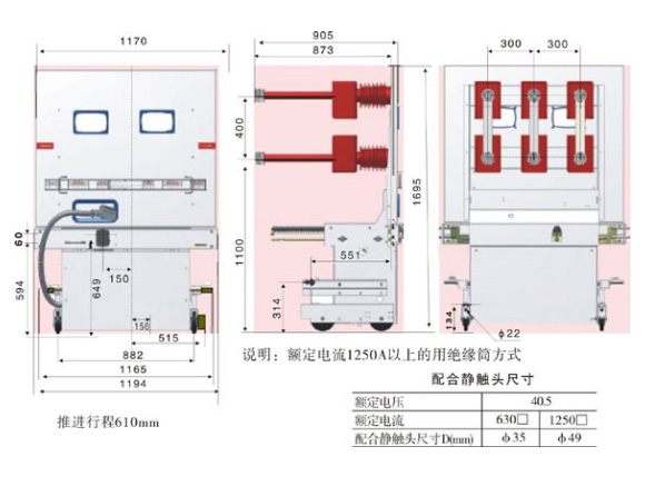 本公司生产的系列中手车车架中装有丝杠螺母推进机构,可轻松移动手车,并防止误操作而损坏推进结构;适用于KYN61-40.5铠装移开式金属封闭开关设备中用于三相交流50Hz、40.5KV单母线分段电力系统,手车配置不同的一次元器件,可分别具有母线联络,电能测量、电力设备过载或短路保护作用,以及在系统检修时作为保护功能单元。产品满足GB/T11022-1999《高压开关设备通用技术备件》的相关规定。根据手车的选用配置方案,可具有可靠的位置和联锁功能。