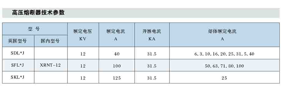 5高压熔断器技术参数